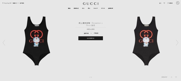 奢侈品牌子Gucci 推出「DORAEMON X GUCCI」系列,有38款服裝飾品,包括:T恤、衞衣、外套、牛仔褲、波鞋、銀包、手袋、公事包、泳衣及手錶等。當中Doraemon x Gucci泳衣更是網上獨家發售,其他比較常見的如波鞋、T恤等,售價分別為$8100及$5200左右。【官方網站】