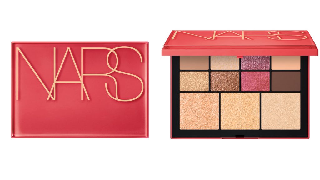 春季彩妝趨勢為自然裸肌搭配水嫩光澤、同時運用細緻閃耀搭配霧光質地的眼影,於眼睛周圍疊加變化出讓人一眼就醉的色調。NARS迷幻恣醉眼頰盤不僅有百搭玫瑰香檳色的8色眼影,還加入3款打亮色,能創造柔美眼神與自然光澤,一抹提亮輪廓。