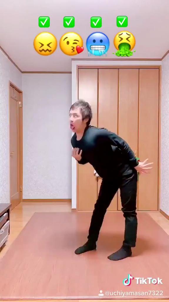 日本搞笑藝人内山さん近日不時都會在 Twitter、TikTok 等社交平台上分享自己的表演。最近他就嘗試用姿體動作跟極誇張的表情將一些常用的 Emoji 還原出來。如「嬲嬲」Emoji 會激動到手舞足蹈,「飛吻」的表情會單眼到臉容扭曲,認真好笑。而他亦會扮演動物甚至是物件類的 Emoji,精湛的模仿成功讓他獲得 400 多萬粉絲。