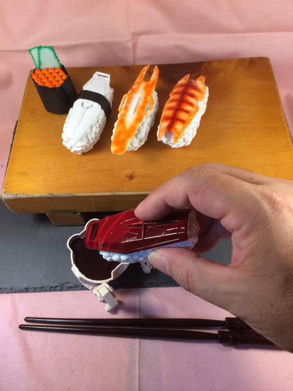 當然,除了高達模型零件的部分,樓主亦在作品中用了很多黏土幫助塑形,如壽司中的飯粒全都是由黏土做出來,當中花了無數心思。大家見到這些作品後,有沒有打算創作自己的高達模型改造美食系列?