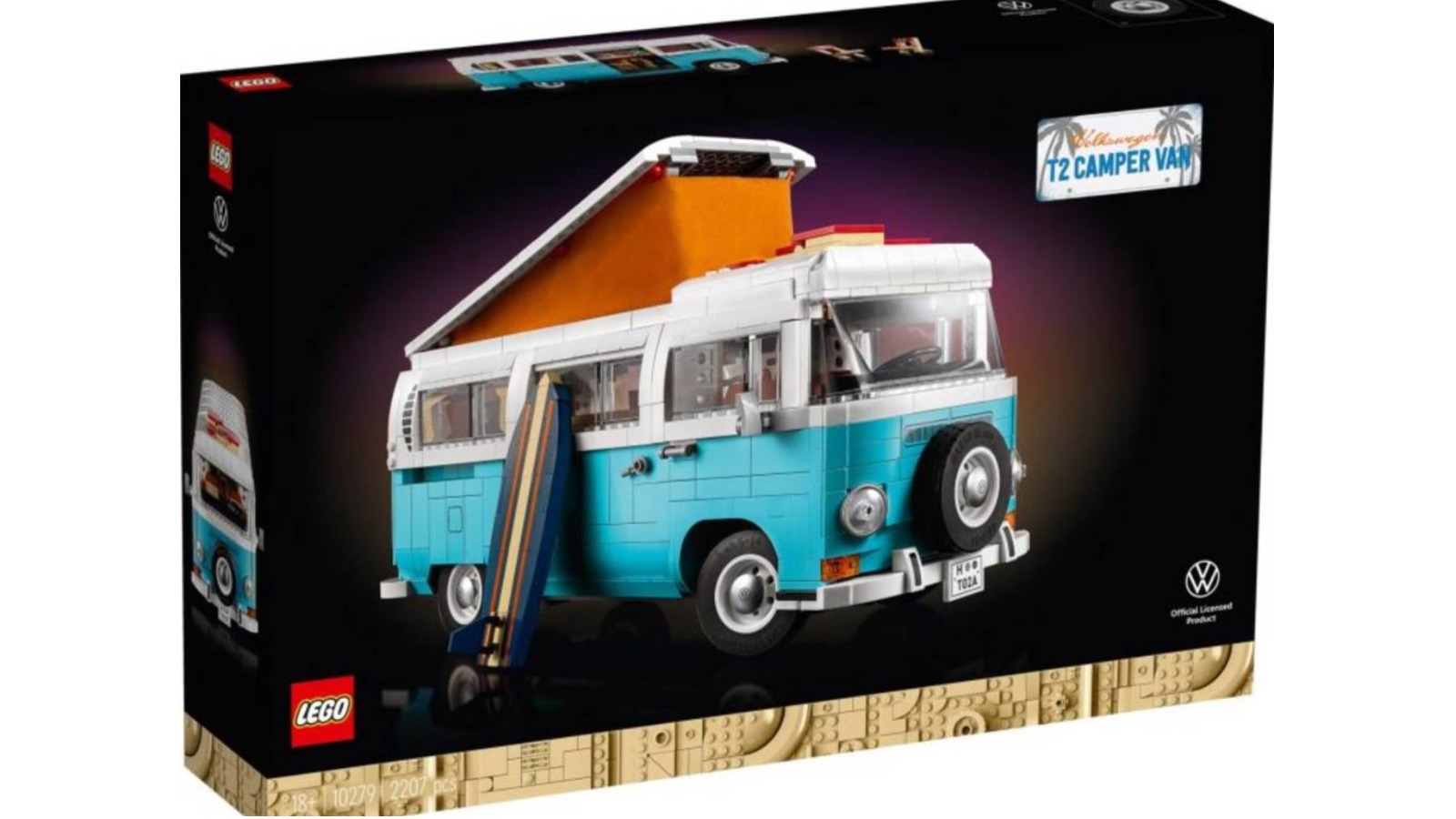 LEGO 早年曾推出 10220 福士麵包露營車(Volkswagen T1 Camper Van),而今次的 10279 零件數增加了接近 900 件,達 2207 件。組裝完成後的福士麵包露營車長 35cm、高 15cm,當中的内裝十分精緻,連雪櫃、水槽等都有。而麵包車的外觀為藍白配色,車頭有著標誌性的設計,除了車門能滑開外,車頂亦能彈出,還原真實的麵包露營車。更可愛的是,今次套裝還包含了一塊衝浪板跟兩張露營椅,如果貼上套裝附上的貼紙,看起來更有個人特色。
