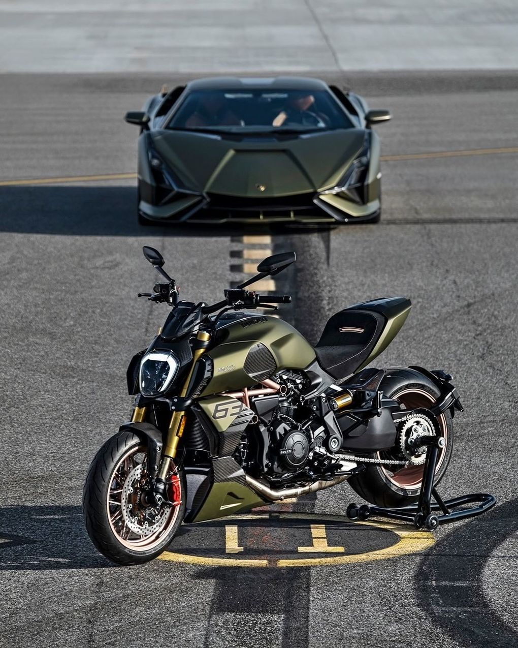 這台車的全名叫做Ducati Diavel 1260 Lamborghini,是以Diavel 1260 S為基礎所打造的。雙方工程師將Lamborghini 旗下超跑SiánFKP 37元素融入到Diavel上。不過雙方的合作僅止於外觀設計,動力上與車架懸吊則沒有過多改變。作為頂級限量車款,Ducati 在各類佈建材料上也是大手筆投入成本,其中用最多的就是碳纖維套件,包括下擾流、油箱蓋、單座蓋,前後土除、儀表板飾蓋和、前燈框架、水箱外蓋與防燙蓋等等。