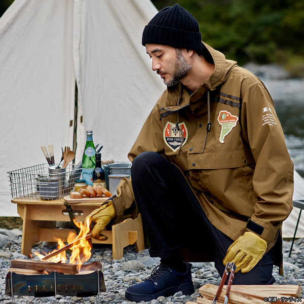 今次聯乘推出的 Takibi 系列以戶外服飾為主,既有連帽風褸,也有羽絨軍褸及隨身袋等。一如所料,服飾都是以聯邦軍及自護軍作為主題。