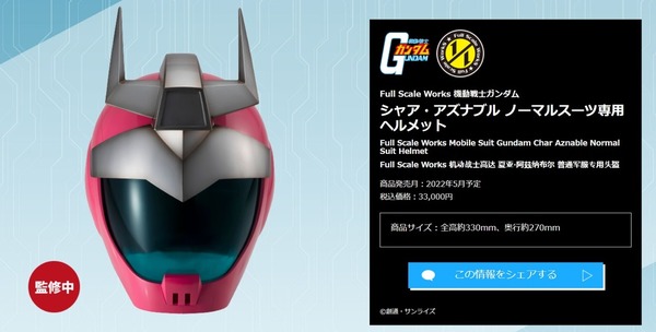 《機動戰士高達》系列馬沙 1:1 比例「宇宙服專用」頭盔登場