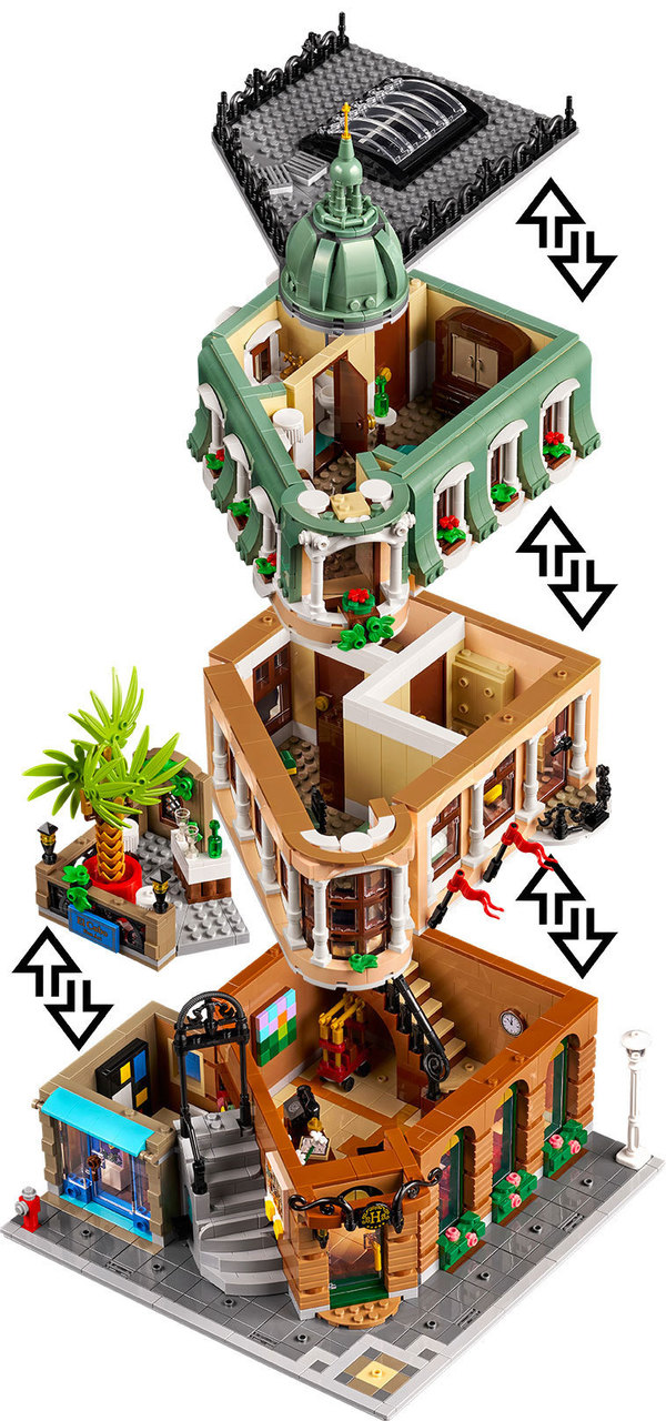 「LEGO 10297 Boutique Hotel」為一座位於轉角,有著歐陸風格的 3 層精品酒店,當中零件數達 3066 件,配件極多,玩法與自由度可說是相當多,粉絲絕對不會失望。可愛的是,今次的精品酒店有著特殊設計的高低層數落差,不同角度看都有不同的體驗,令人回味舊作之餘亦不會讓人厭倦,十分值得入手。
