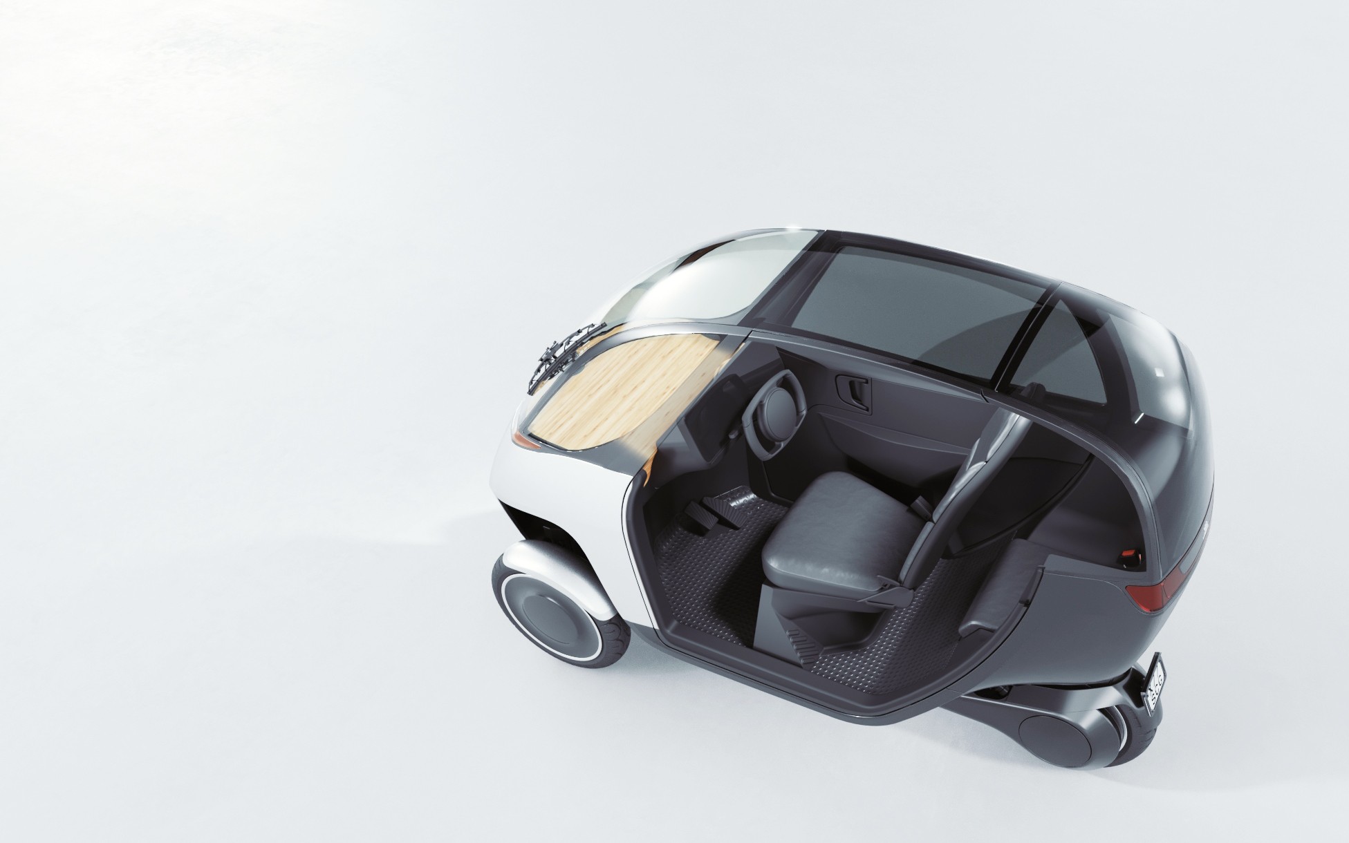 這輛名為Halo的電動三輪車,車長為2.3公尺,只有現時四門車的一半長度左右,車內因配合歐洲寒冷天氣,更有暖氣功能,材質以鋼與鋁合金為主,具雙人座3安氣囊,一具方向盤氣囊、兩具側廉氣囊,並且設有側防撞桿。